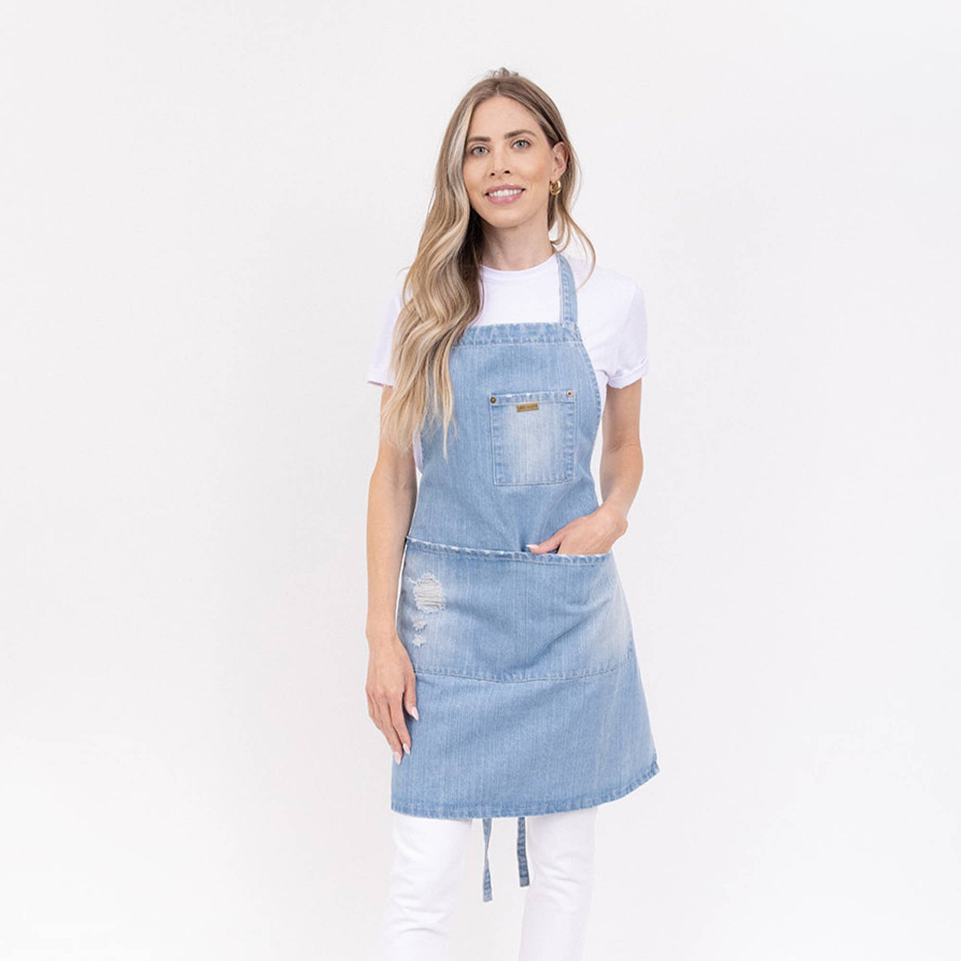 Keep your clothes protected with this denim chambray unisex apron. Made of durable cotton, it features an adjustable neck strap for ultimate comfort, lower pockets for recipes, notes or cooking tools and a chest pocket to hold your cell phone and a pen - extremely practical. Measures 30" in length with long straps that let you customize the fit.