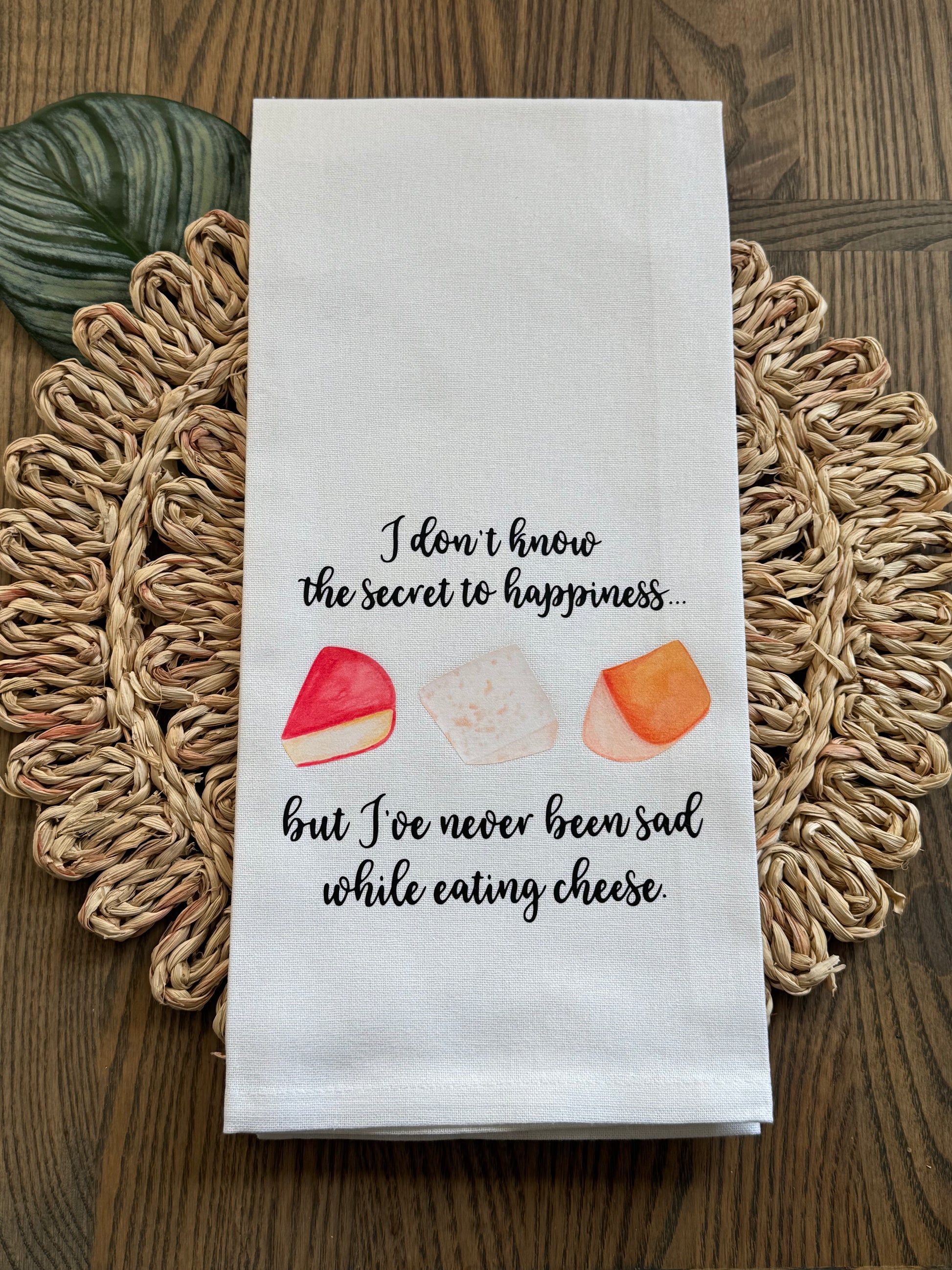 Funny Cheese Tea Towel – Secret to Happiness Kitchen Towel | Foodie Gift, Hostess Humor