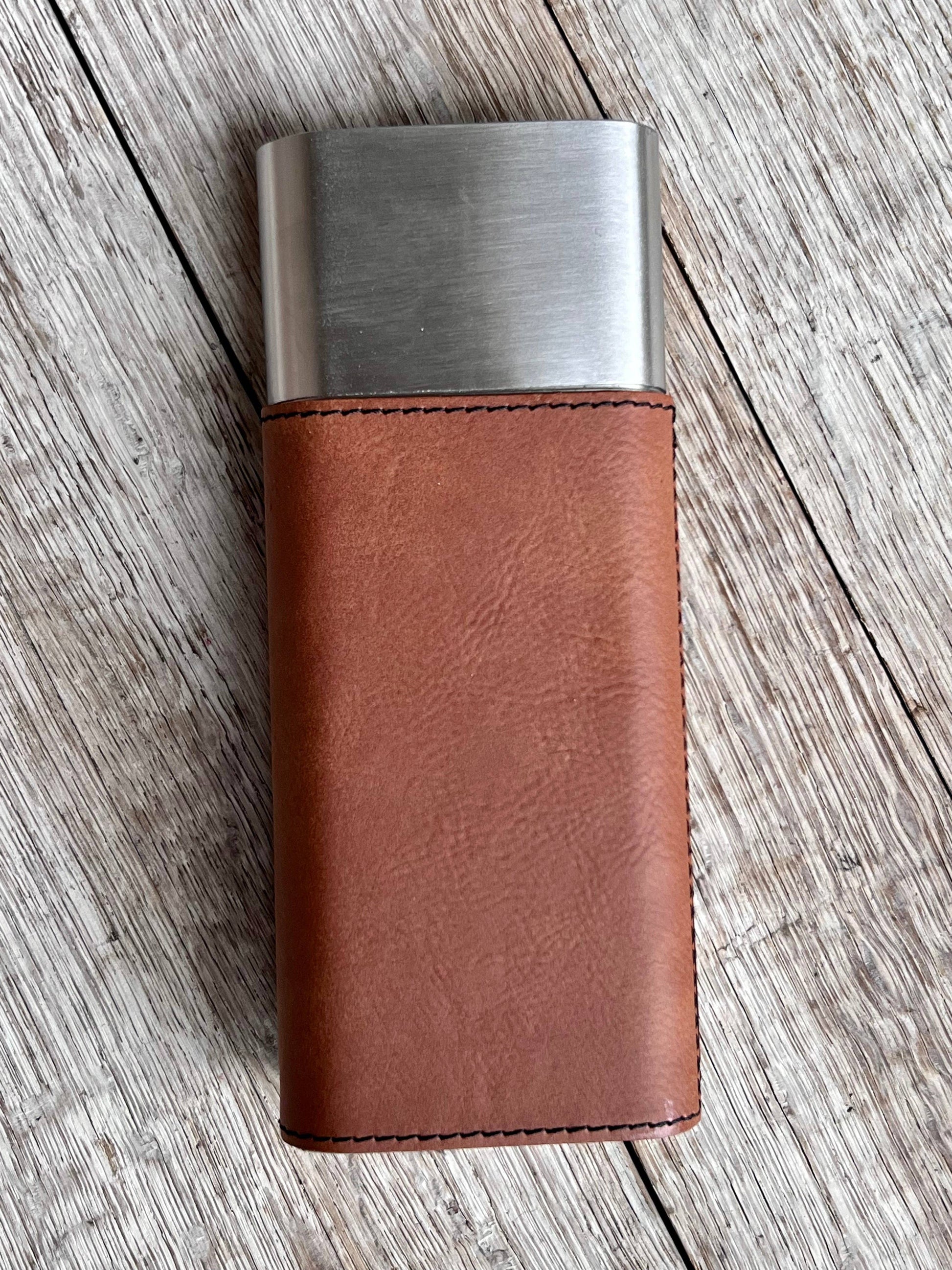 This stainless steel cigar + flask combo makes the perfect personalized gift for holidays, weddings, groomsmen, game days, and celebrations. Each set comes wrapped in laserable leatherette, giving it the feel of genuine leather with beautiful engraving results.