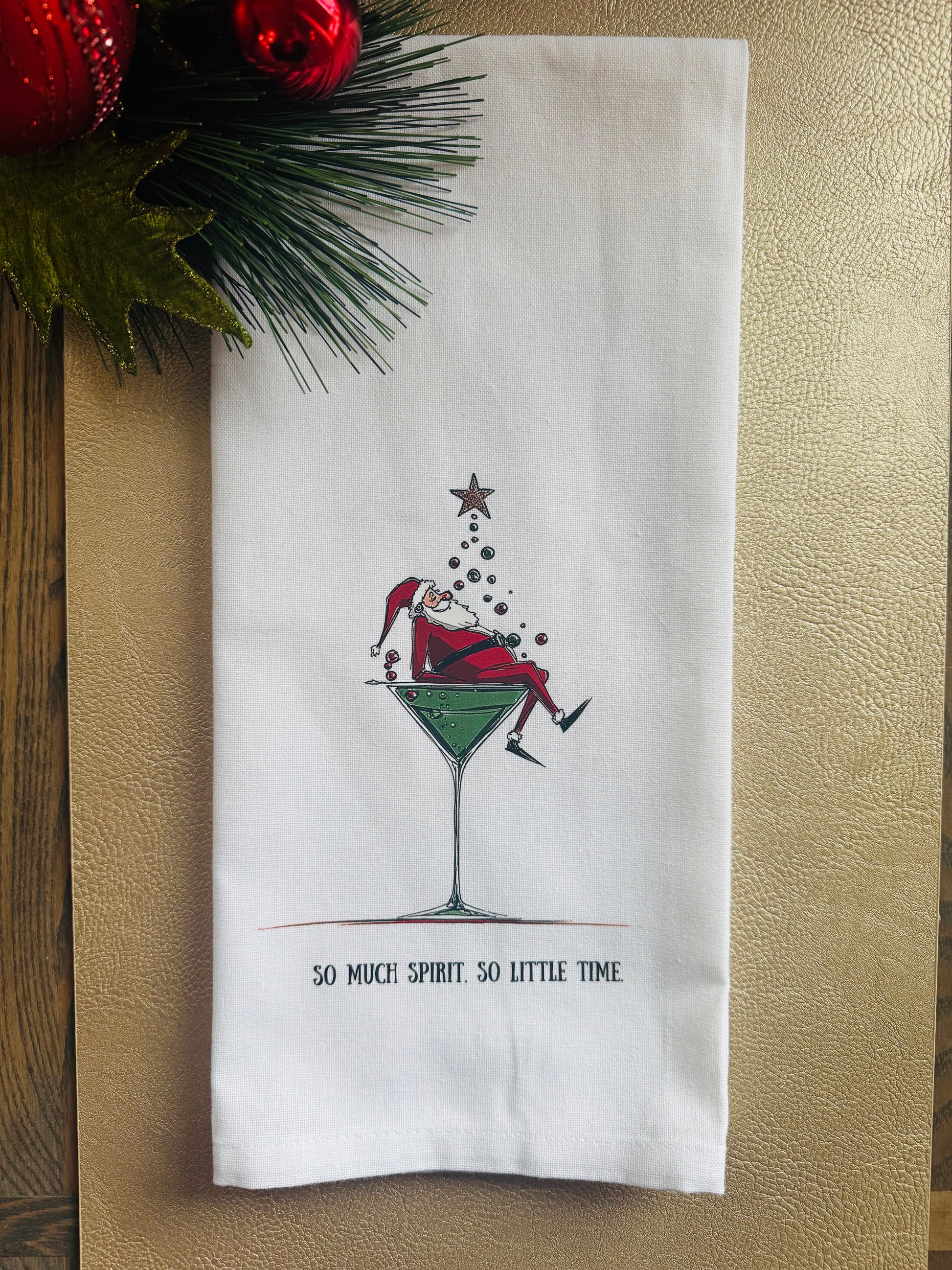 “So Much Spirit, So Little Time” Christmas Tea Towel – Funny Holiday Kitchen Decor, Santa Martini Towel, Hostess Gift (Copy)